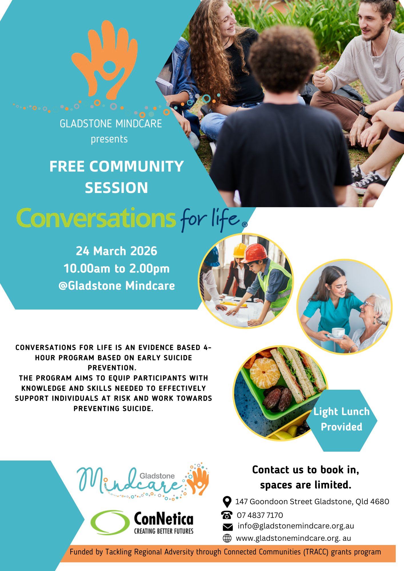 We will be holding the program on the 24th of March 2026 from 10am - 2pm in Gladstone Mindcare's Sunflower Room at 147 Goondoon St, Gladstone Central. If you would like to be part of this free community session, please contact us on 07 4837 7170 and speak with Bjay.